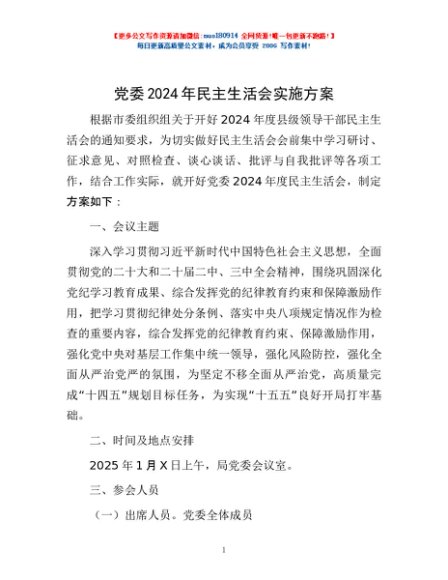 / 党委2024年民主生活会实施方案