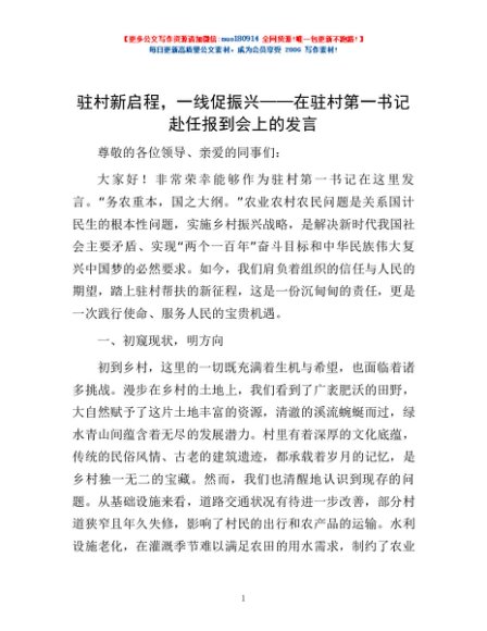 / 驻村新启程,一线促振兴——在驻村第一书记赴任报到会上的发言