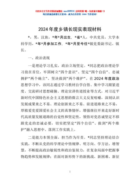 / 2024年度乡镇长现实表现材料