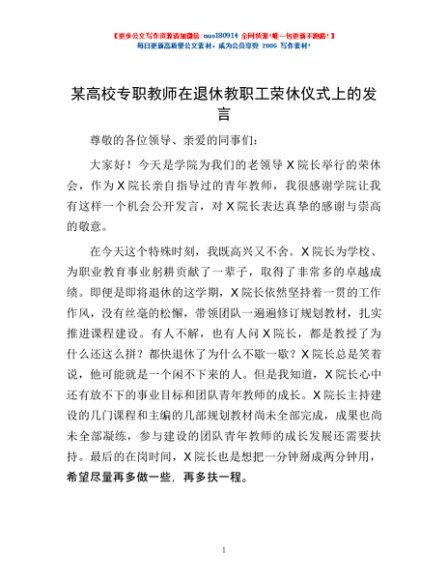 / 某高校专职教师在退休教职工荣休仪式上的发言