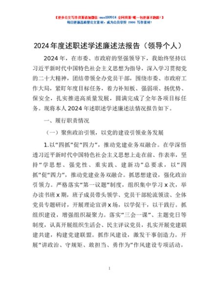 / 2024年度述职述学述廉述法报告(领导个人)