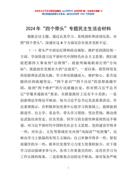 / 2024年“四个带头”专题民主生活会材料