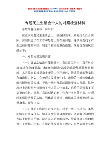 / 专题民主生活会个人的对照检查材料