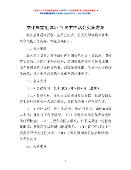 / 文化局党组2024年民主生活会实施方案