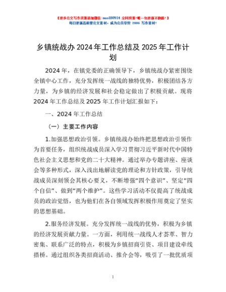 / 乡镇统战办2024年工作总结及2025年工作计划