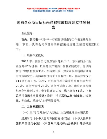 / 国有企业项目招标采购和招采制度建立情况报告