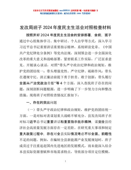 / 发改局班子2024年度民主生活会对照检查材料