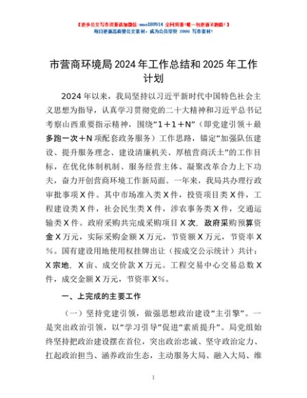 / 市营商环境局2024年工作总结和2025年工作计划