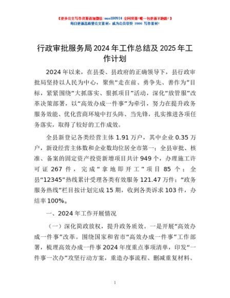 / 行政审批服务局2024年工作总结及2025年工作计划