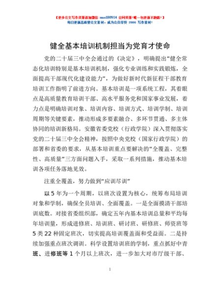 / 健全基本培训机制 担当为党育才使命