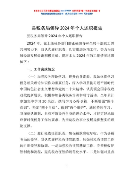/ 县税务局领导2024年个人述职报告
