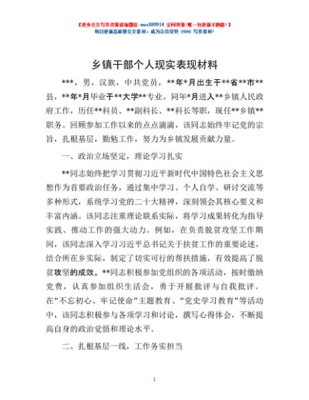 / 乡镇干部个人现实表现材料