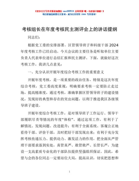 / 考核组长在年度考核民主测评会上的讲话提纲