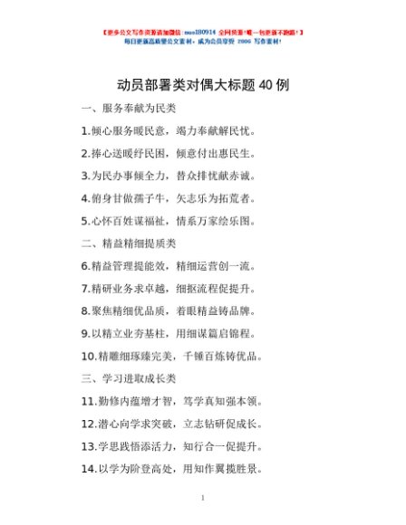 / 动员部署类对偶大标题40例