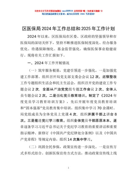 / 区医保局2024年工作总结和2025年工作计划