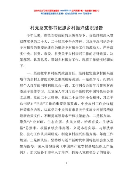 / 村党总支部书记抓乡村振兴述职报告