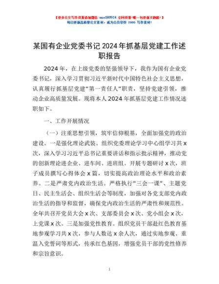 / 某国有企业党委书记2024年抓基层党建工作述职报告