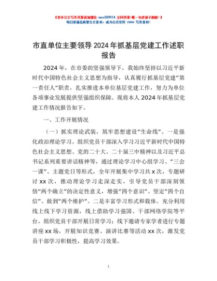 / 市直单位主要领导2024年抓基层党建工作述职报告