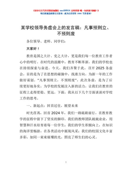 / 某学校领导务虚会上的发言稿:凡事预则立、不预则废