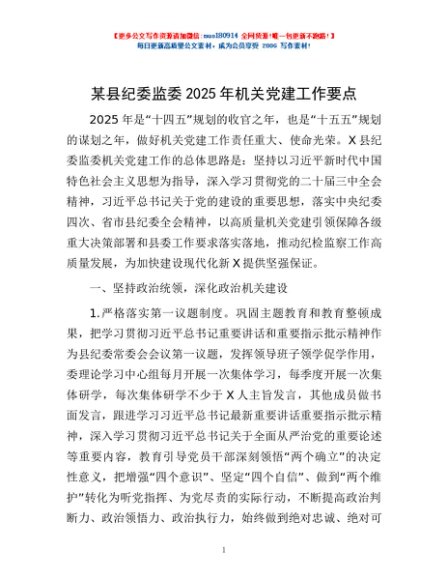 / 某县纪委监委2025年机关党建工作要点