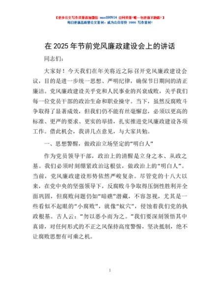 / 在2025年节前党风廉政建设会上的讲话