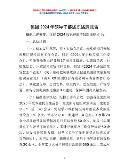 / 集团2024年领导干部述职述廉报告