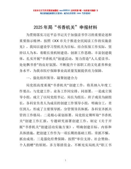 / 2025年局“书香机关”申报材料
