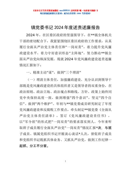 / 镇党委书记2024年度述责述廉报告