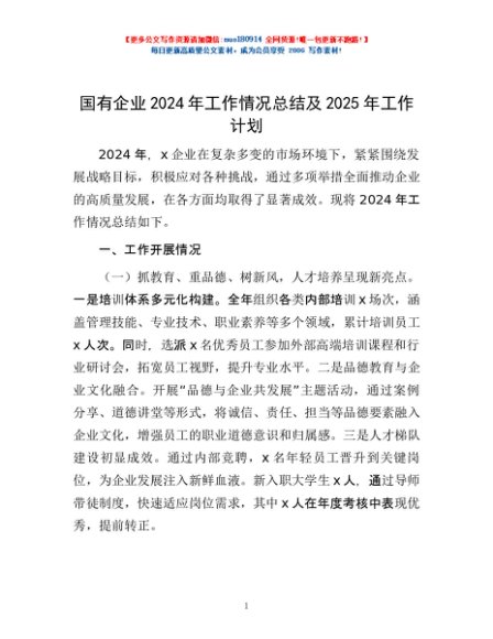 / 国有企业2024年工作情况总结及2025年工作计划