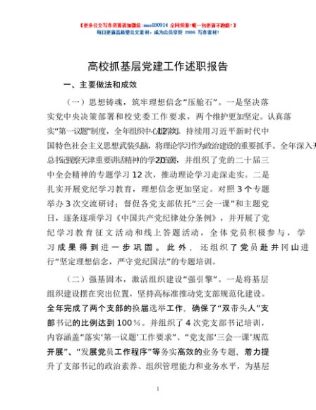 / 高校抓基层党建工作述职报告