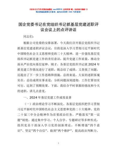 / 国企党委书记在党组织书记抓基层党建述职评议会议上的点评讲话