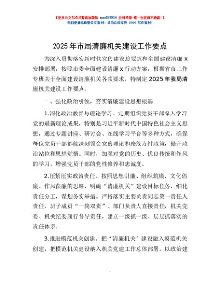/ 2025年市局清廉机关建设工作要点