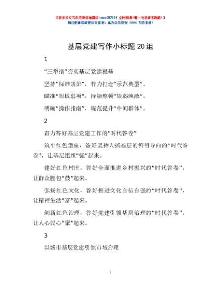 / 基层党建写作小标题20组