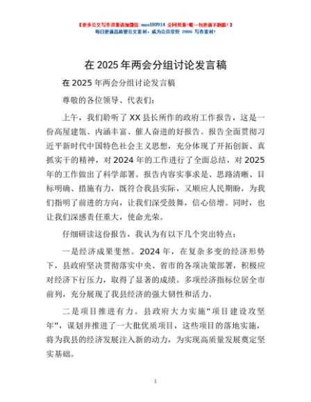 / 在2025年两会分组讨论发言稿