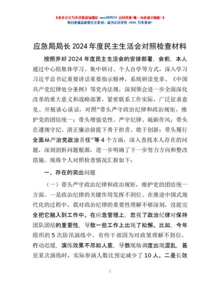 某医保局局长2024年度民主生活会发言提纲(四个带头+典型案例)