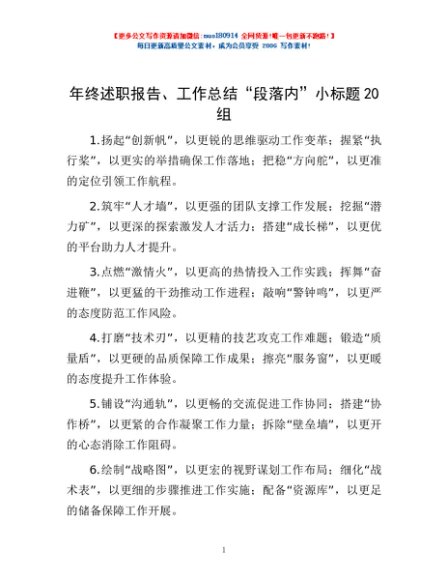 / 年终述职报告、工作总结“段落内”小标题20组