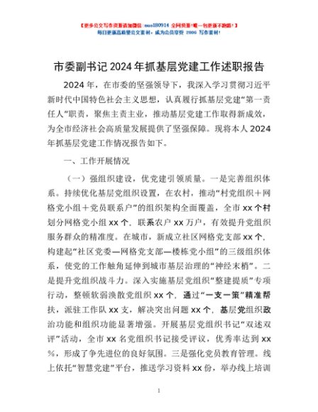/ 市委副书记2024年抓基层党建工作述职报告
