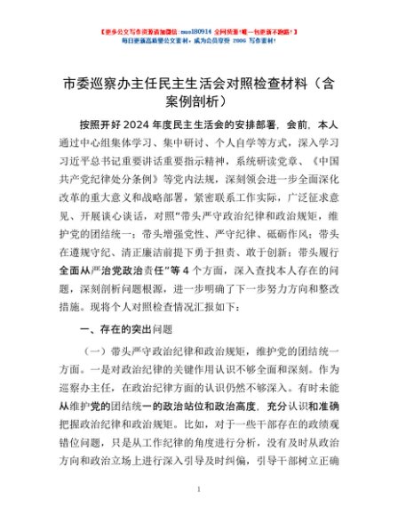 / 市委巡察办主任民主生活会对照检查材料(含案例剖析)