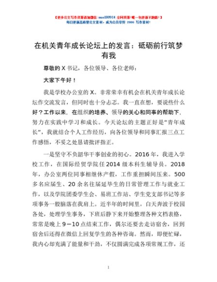 / 在机关青年成长论坛上的发言:砥砺前行筑梦有我