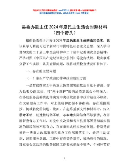 / 县委办副主任2024年度民主生活会对照材料(四个带头)