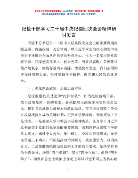 / 纪检干部学习二十届中央纪委四次全会精神研讨发言