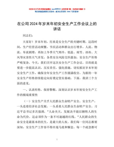/ 在公司2024年岁末年初安全生产工作会议上的讲话