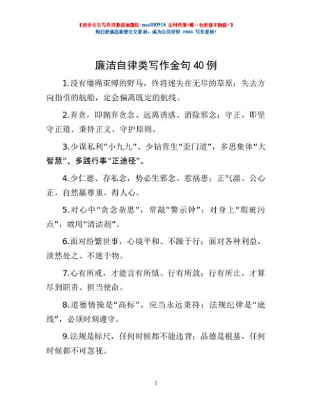 / 廉洁自律类写作金句40例