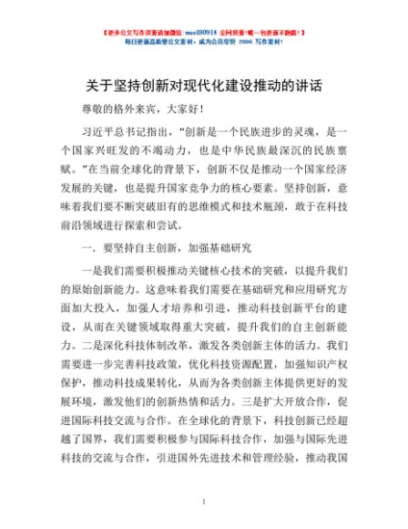 关于坚持创新对现代化建设推动的讲话