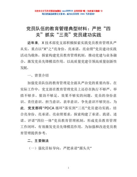 / 党员队伍的教育管理典型材料:严把“四关”抓实“三亮”党员建功实践