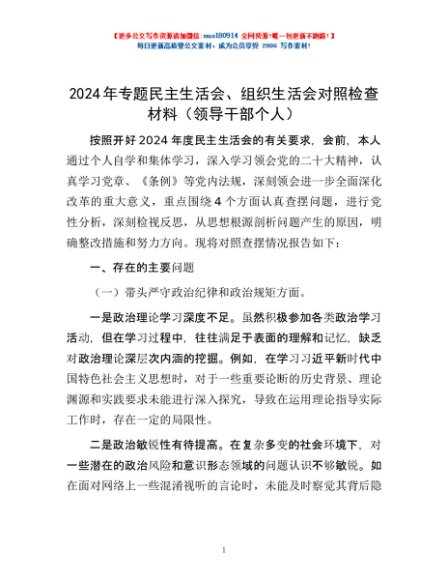 2024年专题民主生活会、组织生活会对照检查材料(领导干部个人)