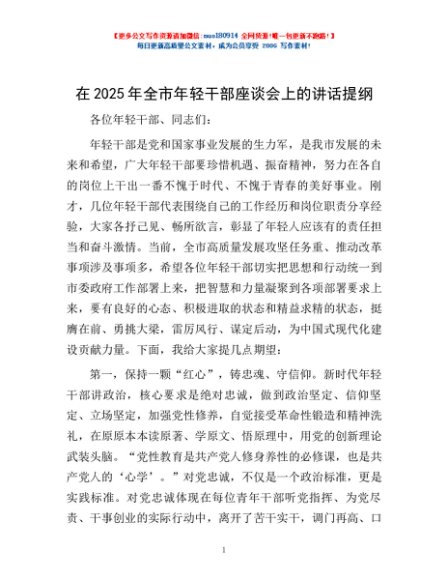 / 在2025年全市年轻干部座谈会上的讲话提纲