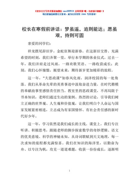 校长在寒假前讲话:梦虽遥,追则能达;愿虽艰,持则可圆