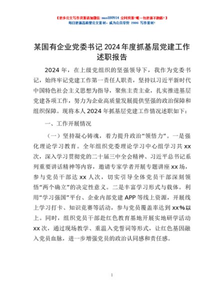 / 某国有企业党委书记2024年度抓基层党建工作述职报告