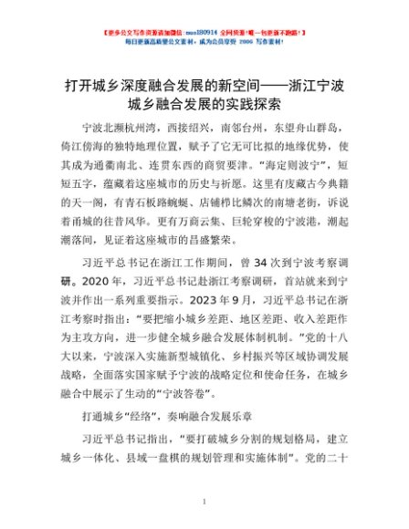 / 打开城乡深度融合发展的新空间——浙江宁波城乡融合发展的实践探索